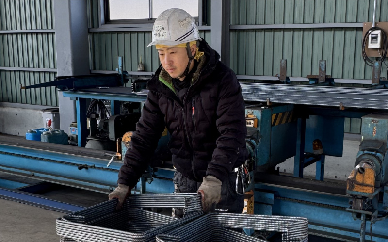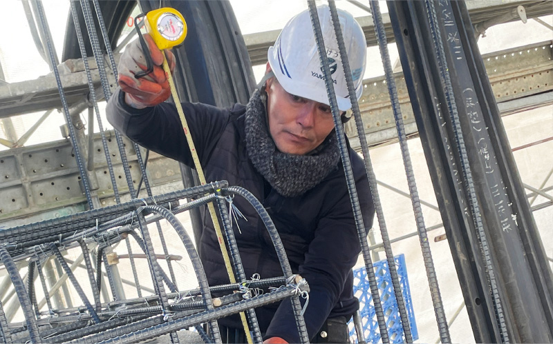 鉄筋という鉄の棒状なようなものでそれを網目状に重ねて結束するという大まかな仕事内容で図面に記された図の通りに鉄筋を重ねて組み上げる仕事です。